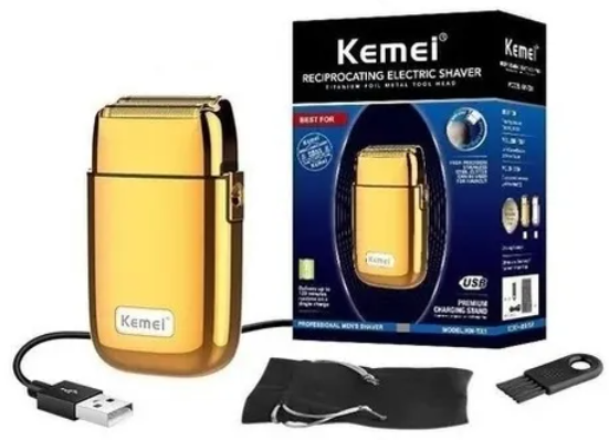 Kemei KM-TX1 Barbeador Elétrico Portátil USB Recarregável Inteligente Anti-pitada Baixo Ruído Malha Dupla de Aço Inoxidável